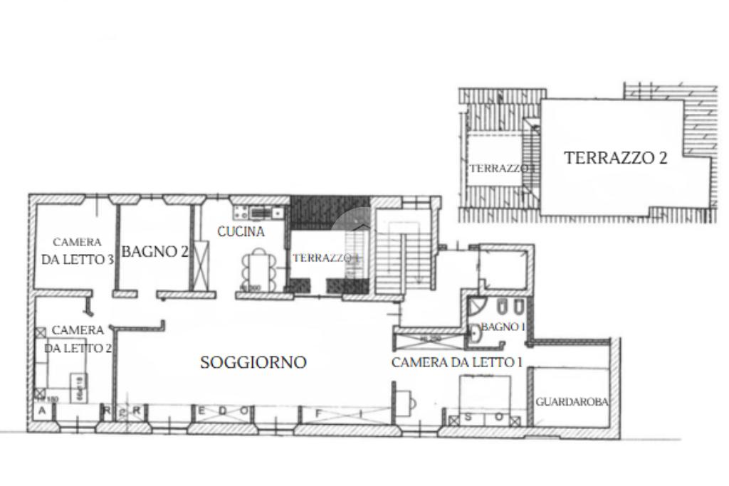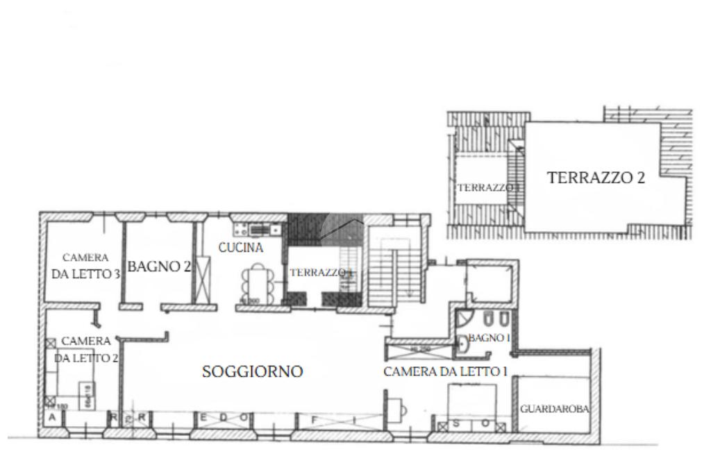 CREMONA - CENTRO - Appartamento luminoso all’ultimo piano, composto da 4 locali con grande soggiorno, camere spaziose, 2 bagni e 2 terrazzi. L’edificio dispone di ascensore, tetto isolato e box doppio.
