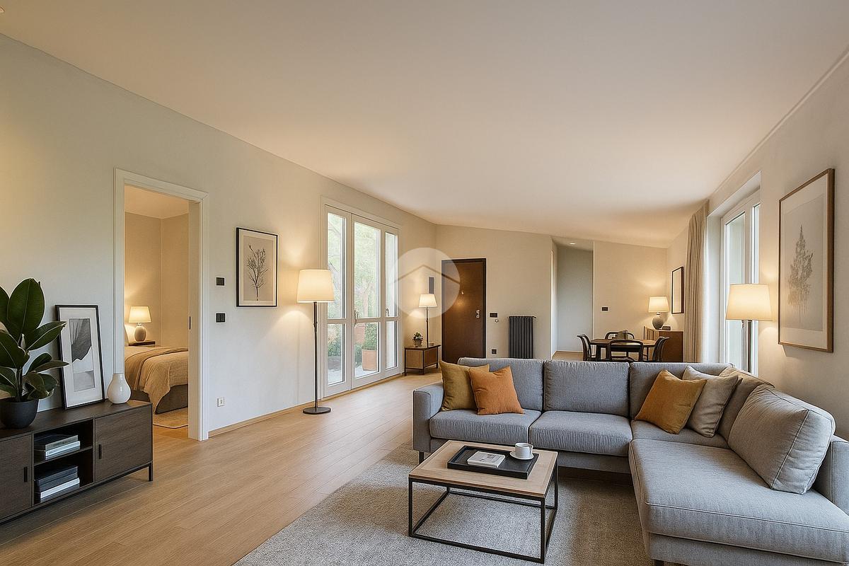 L’ingresso si apre su un ampio soggiorno, reso luminoso da grandi aperture e con affaccio sul terrazzo vivibile, ideale per pranzi all’aperto e momenti di relax.