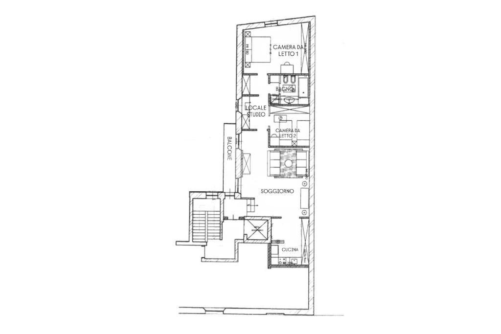 L’ingresso conduce a un ampio e luminoso soggiorno, valorizzato da grandi aperture che garantiscono un’eccellente luminosità naturale, con accesso al balcone. La cucina abitabile risulta funzionale e ben organizzata.