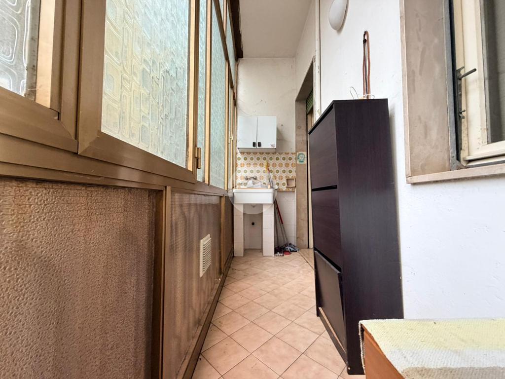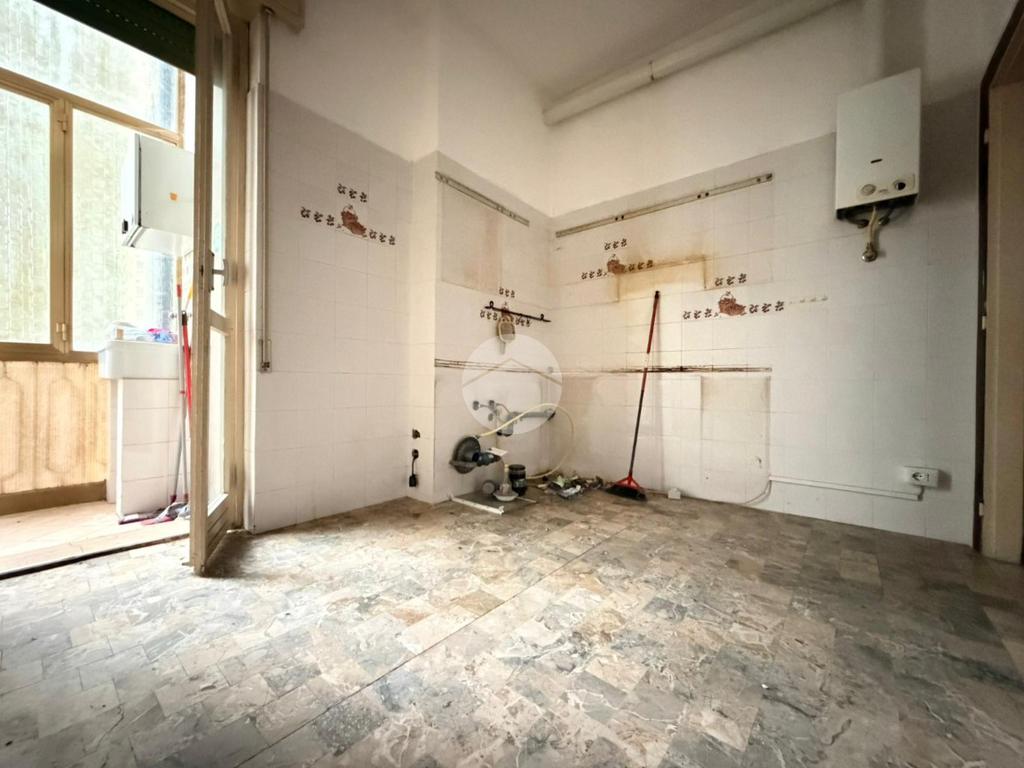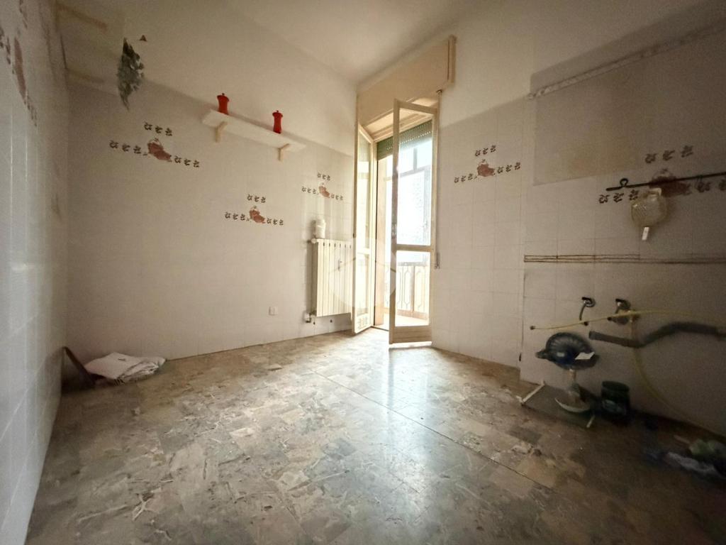 La cucina, separata e di buone dimensioni, risulta particolarmente luminosa grazie all’accesso diretto a un piccolo balcone chiuso, spazio utile come zona di servizio o angolo relax.