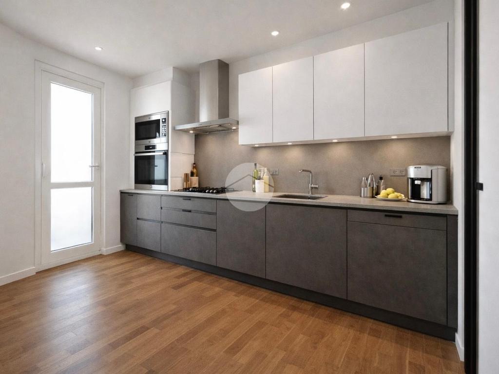 Adiacente alla zona living troviamo la cucina soluzione pratica che garantisce continuità tra gli ambienti e una piacevole fruibilità degli spazi.