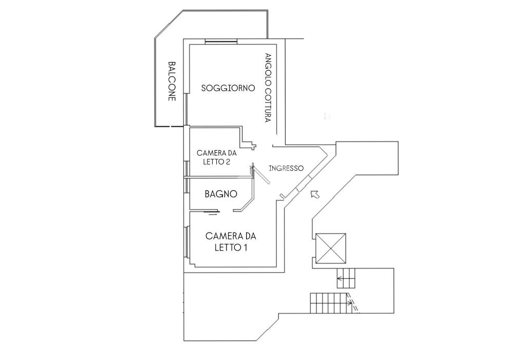La zona giorno è composta da un accogliente soggiorno con angolo cottura, reso particolarmente luminoso grazie all’accesso diretto al balcone che circonda una parte dell’appartamento.