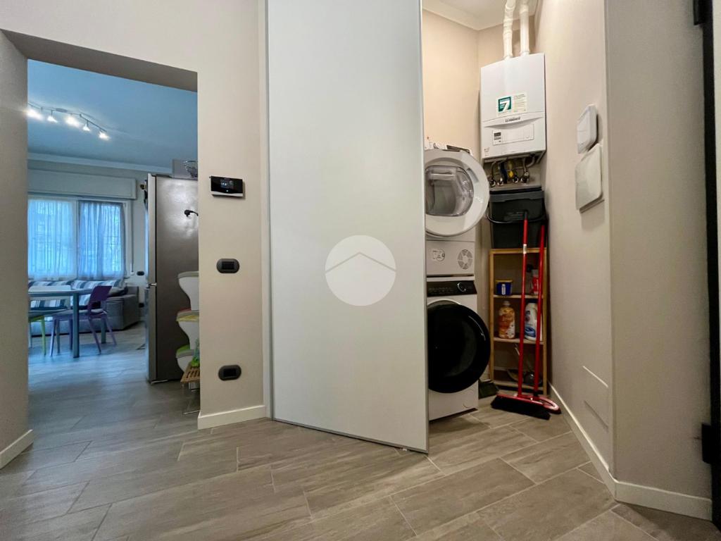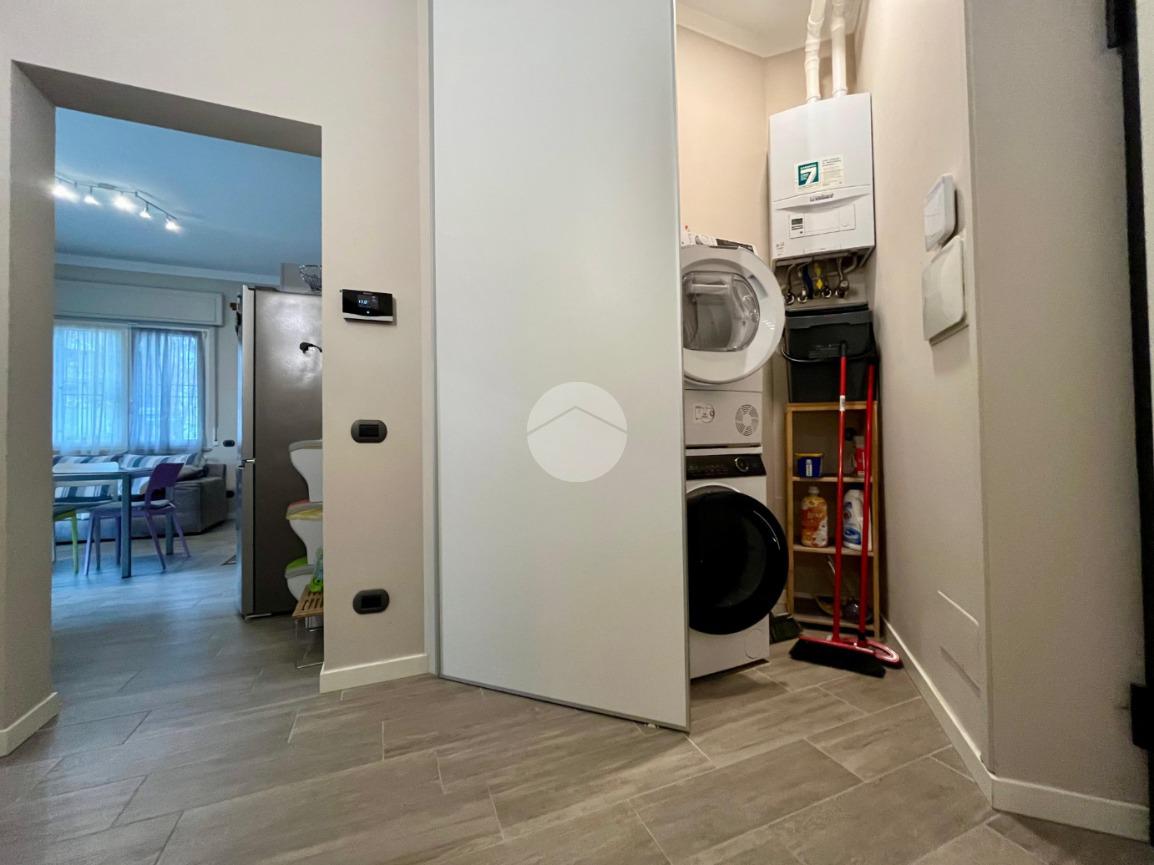 Dall’ingresso si accede anche a un pratico ripostiglio, molto utile come spazio di servizio, perfetto per collocare lavatrice e asciugatrice e per organizzare al meglio gli oggetti di uso domestico.