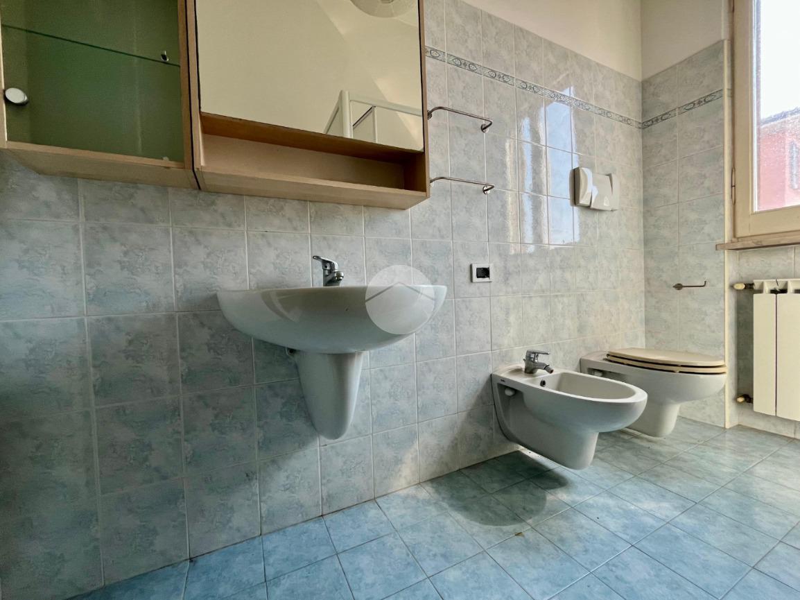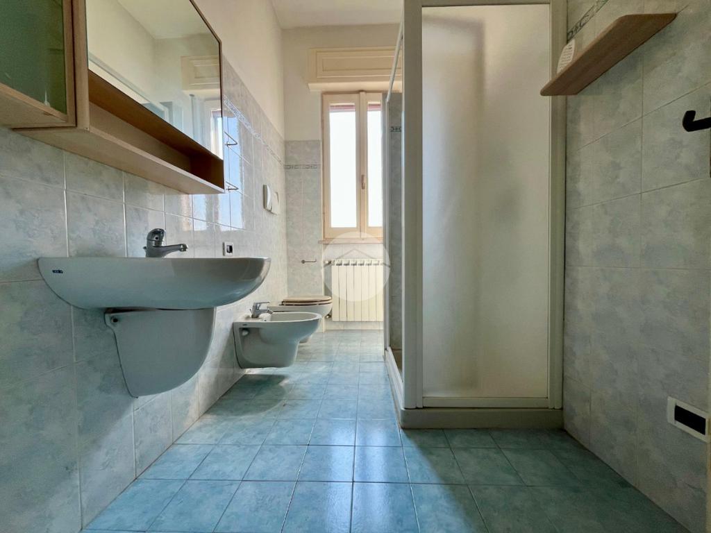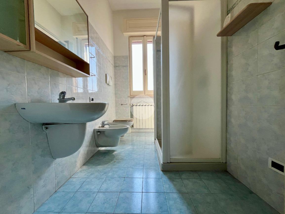 Proseguendo lungo il disimpegno troviamo una camera da letto di generose dimensioni, caratterizzata da ottima luminosità e comfort. Di fronte è presente un bagno finestrato, completo di doccia.