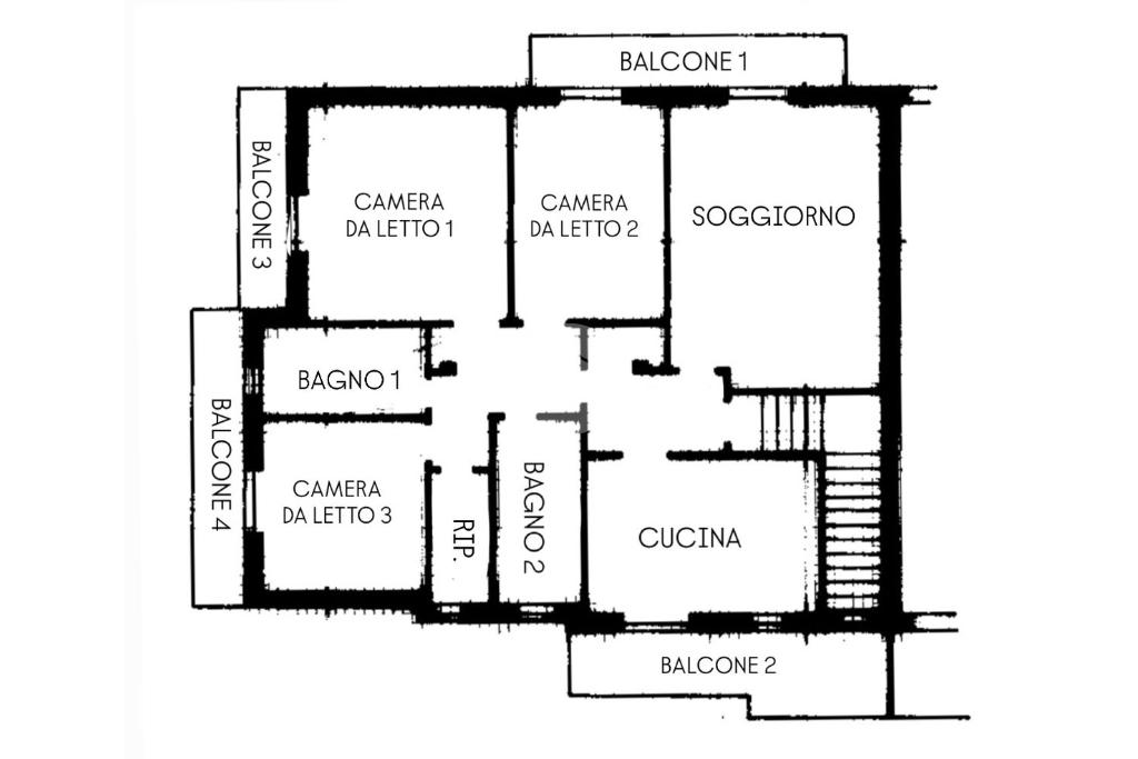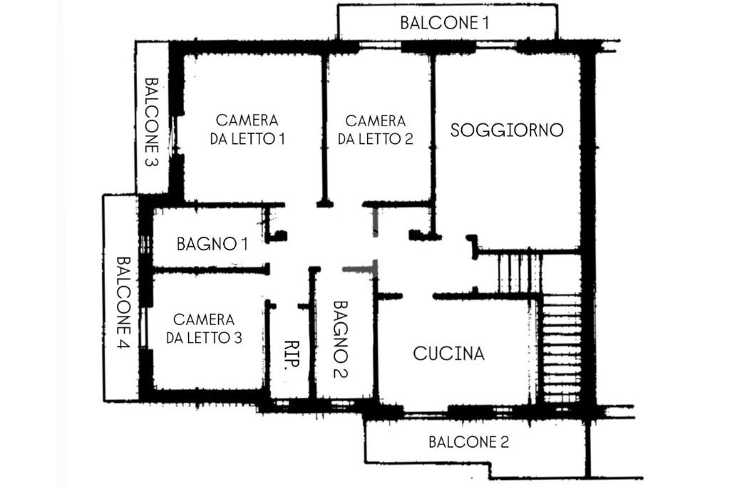 Adiacente al soggiorno si trova la cucina abitabile, caratterizzata da metrature generose che permettono di organizzare comodamente. Anche la cucina dispone di un proprio balcone collegato, che garantisce ulteriore luminosità e praticità, rendendo l’ambiente arioso e funzionale.
