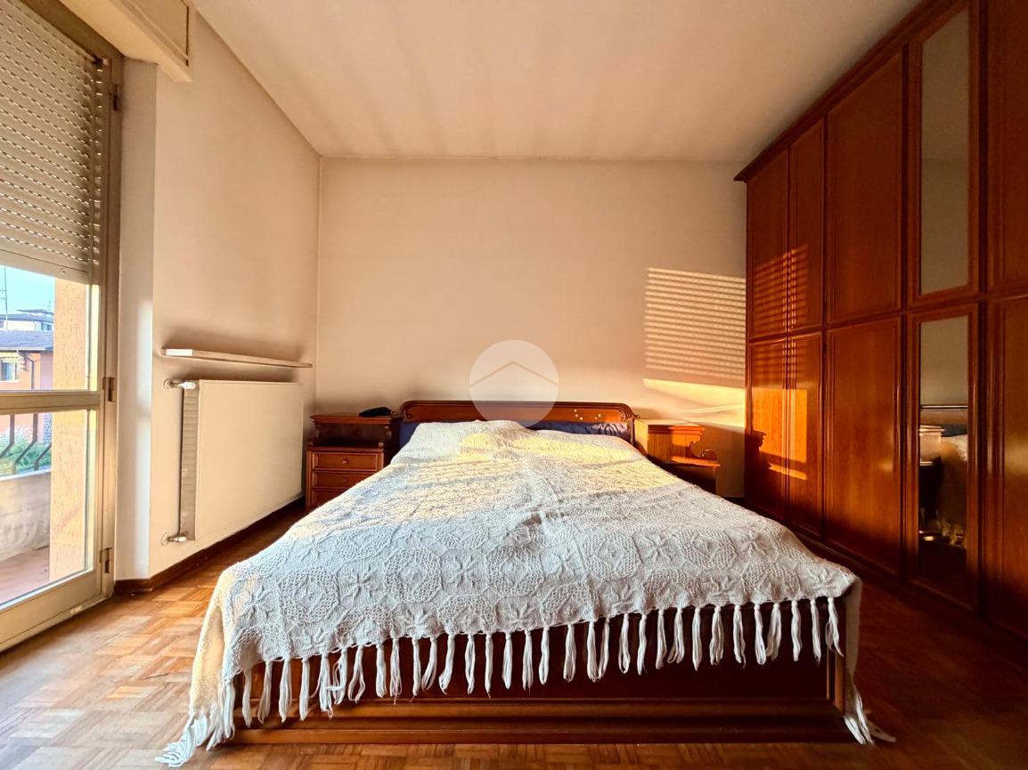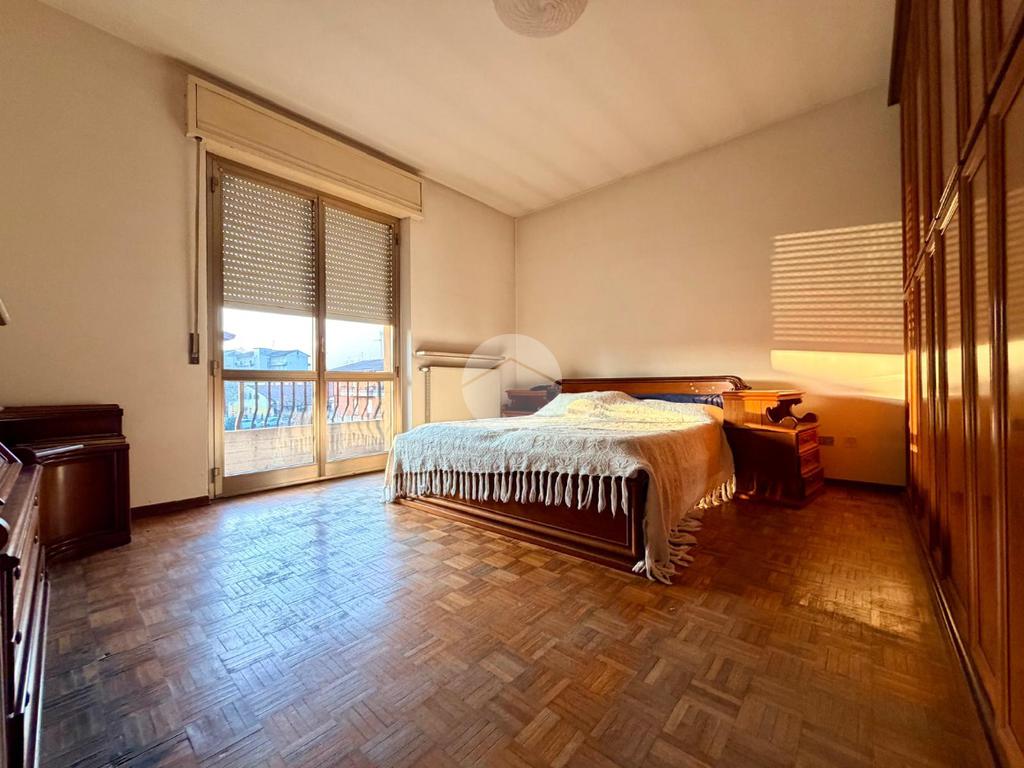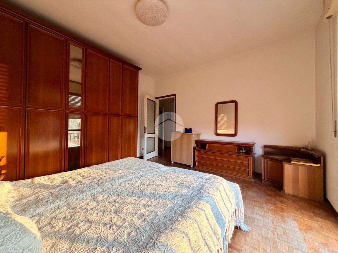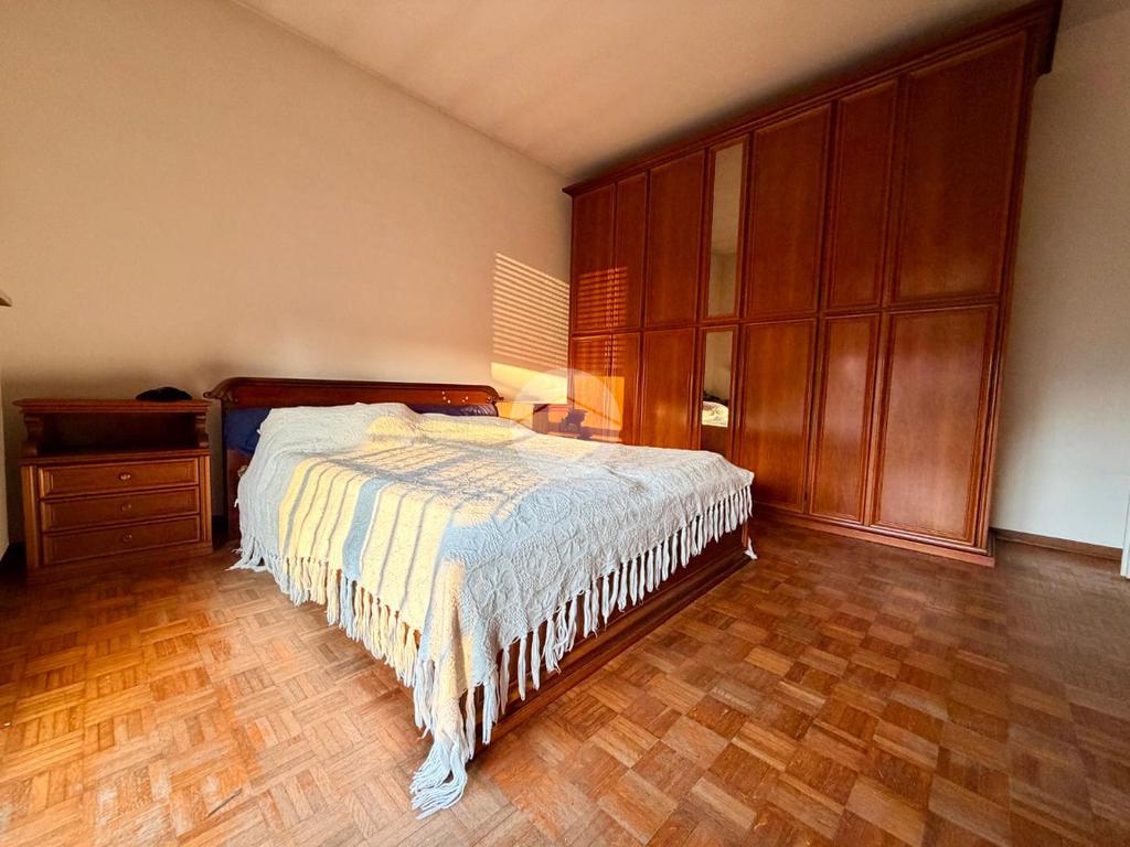 La prima camera da letto è una spaziosa camera matrimoniale, ben illuminata e con accesso diretto al balcone, ideale per chi desidera una stanza confortevole e luminosa.